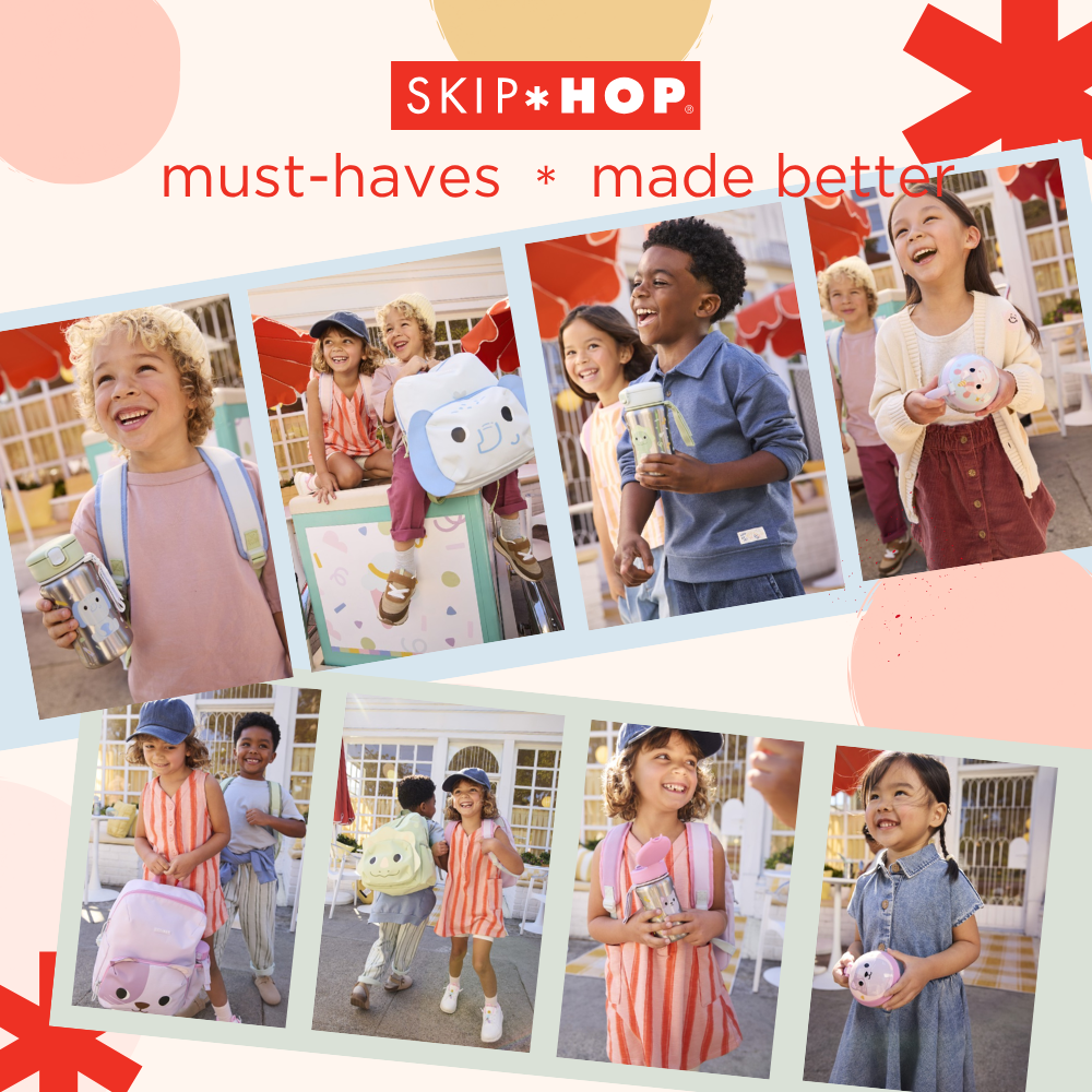 Skip Hop's extensive collection of kids' backpacks come in various sizes and styles. From playful designs to functional features, find the right backpack for any kid's adventures.