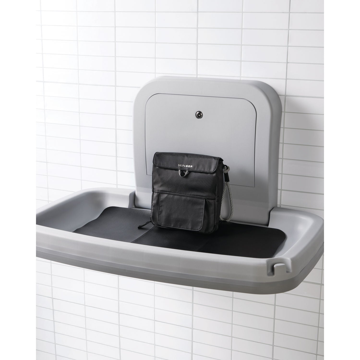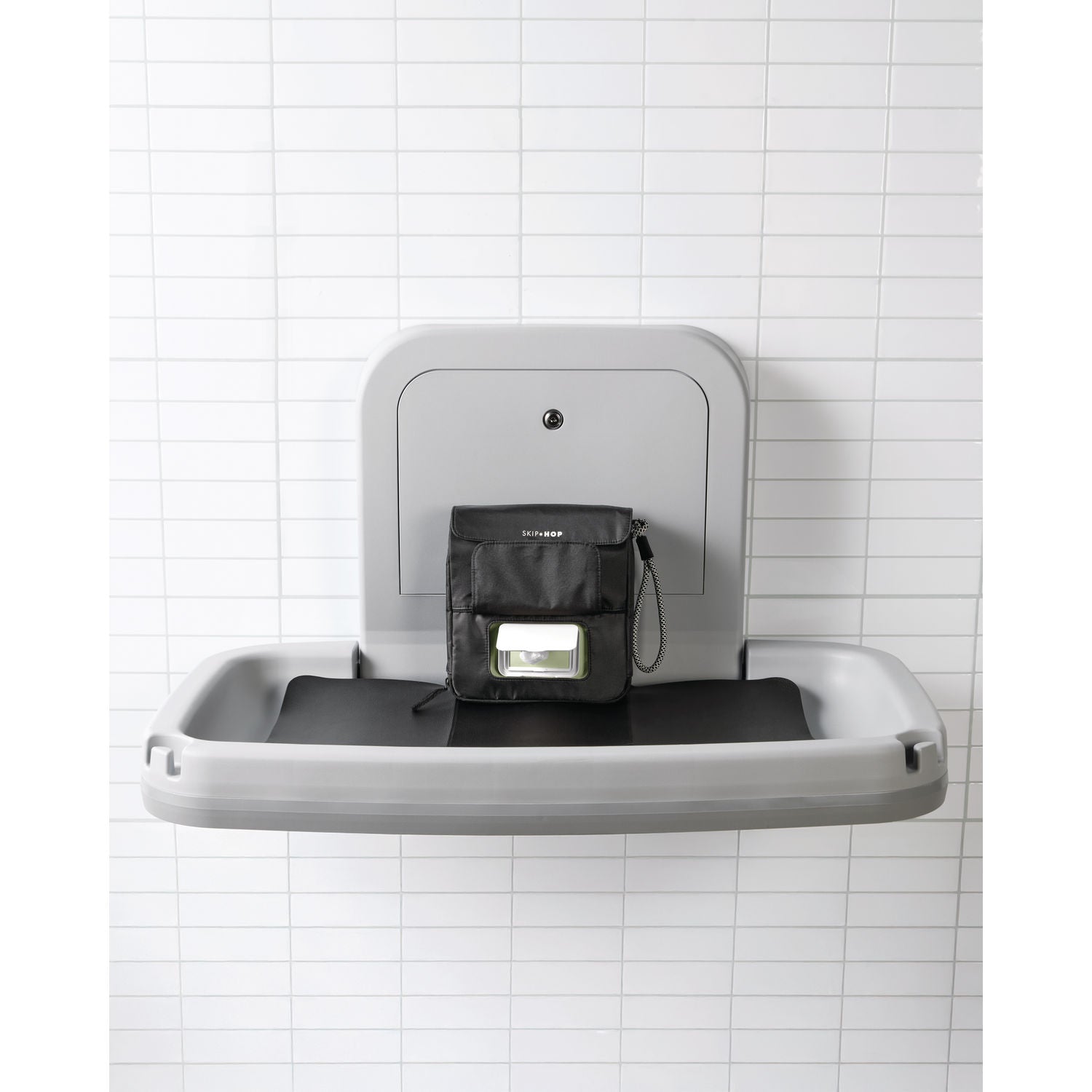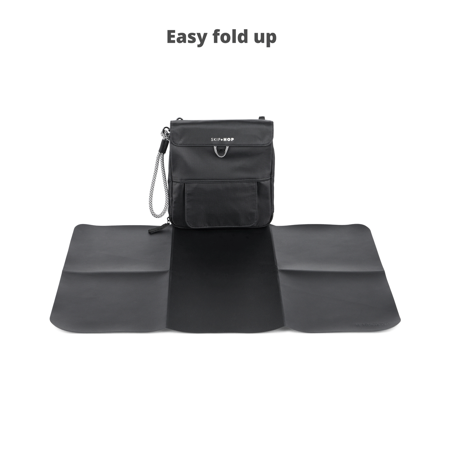 Meet the all-in-one nappy changing solution for on-the-go! Designed to cover public changing stations, the extra-large changing mat wipes clean and easily folds into the portable changing station for next time. Handy details including an easy-access wipes pocket, disposable bag dispenser and storage space for nappies and essentials makes this foldable changing mat and clutch a must-have for travel, shopping and more